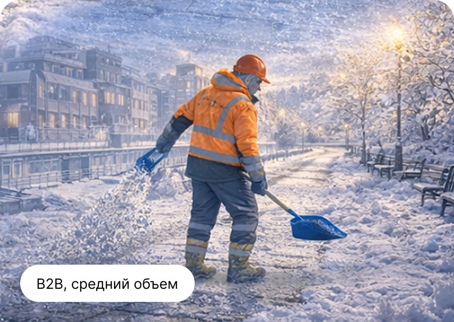 Обслуживаете завод, аэропорт или муниципальный объект? Работаем с оптовыми партиями, биг-бэгами от 500 кг. Заключаем долгосрочные контракты, обеспечим логистику.